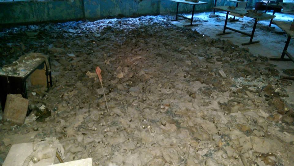 Gas masks dumped in a classroom inside Pripyat, the town servicing Chernobyl. Had they been used as intended, they could have saved some people from radiation