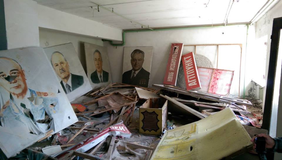 Posters and potraits of Ukrainian Communist Party leaders in a propaganda storage room, Pripyat, 2014.